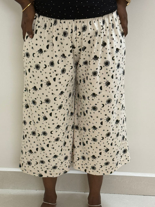 Printed Women's Calf length Palazzo pant - Beige Moon and star