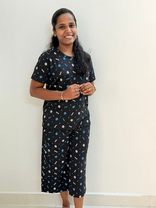 Premium Women's 3/4 th Palazzo coord set - Navy ring