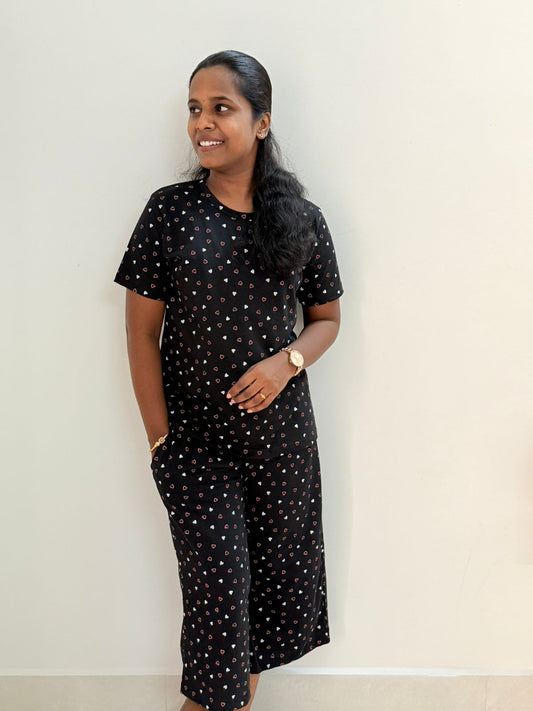 Premium Women's 3/4 th Palazzo coord set - Black Golden hearts