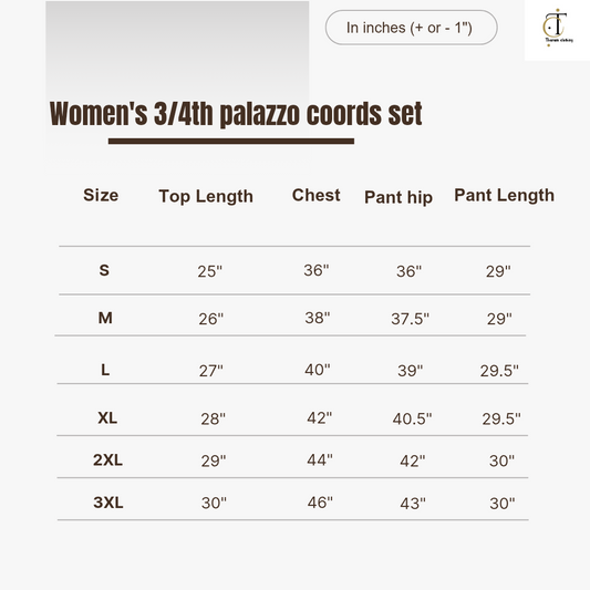 Women's 3/4 th Palazzo coord set - Eclipse ide