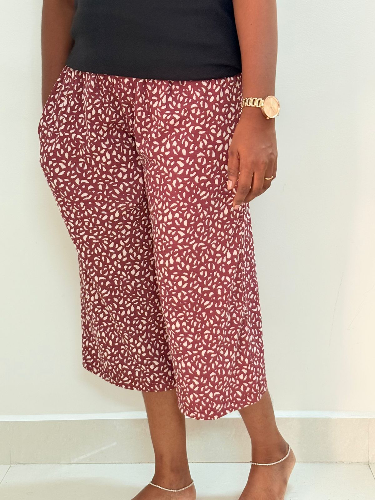 Printed Women's Calf length Palazzo pant -Meroon minis