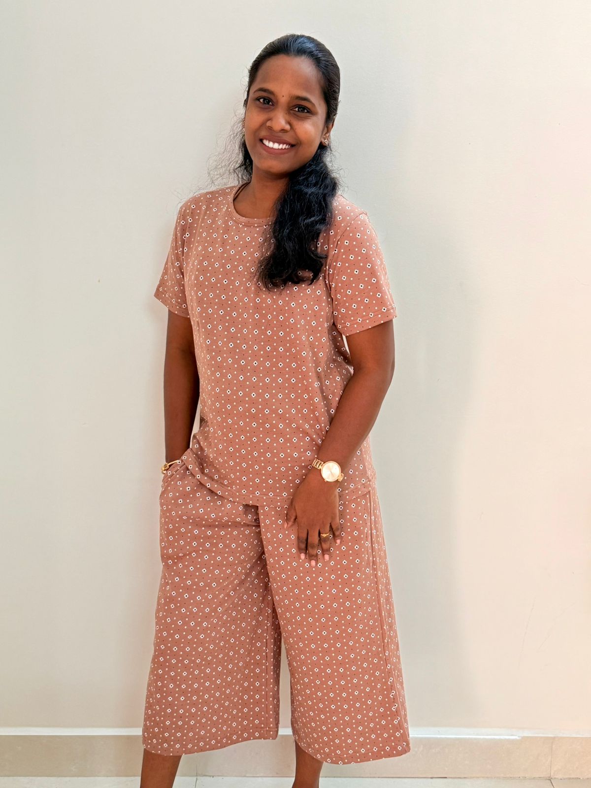 Premium Women's 3/4 th Palazzo coord set - Milk chocolate